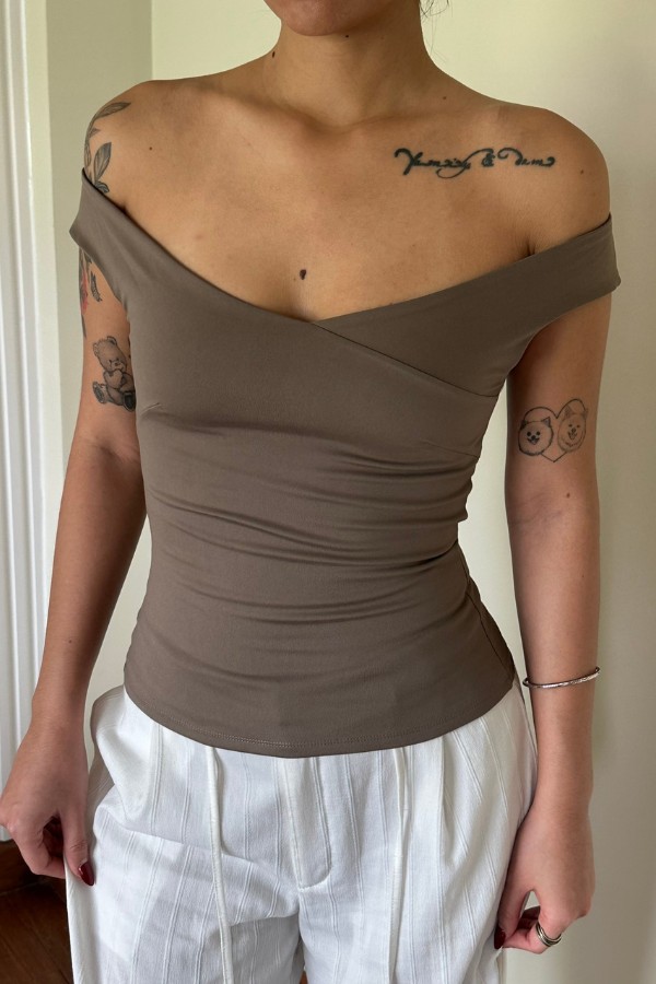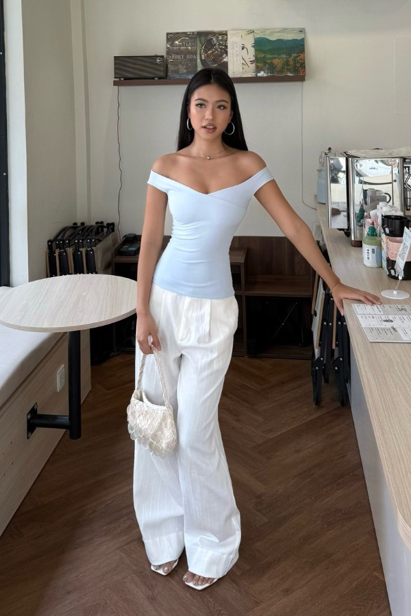 • Off-shoulder neckline highlights your collarbones and shoulders while subtly covering your arms